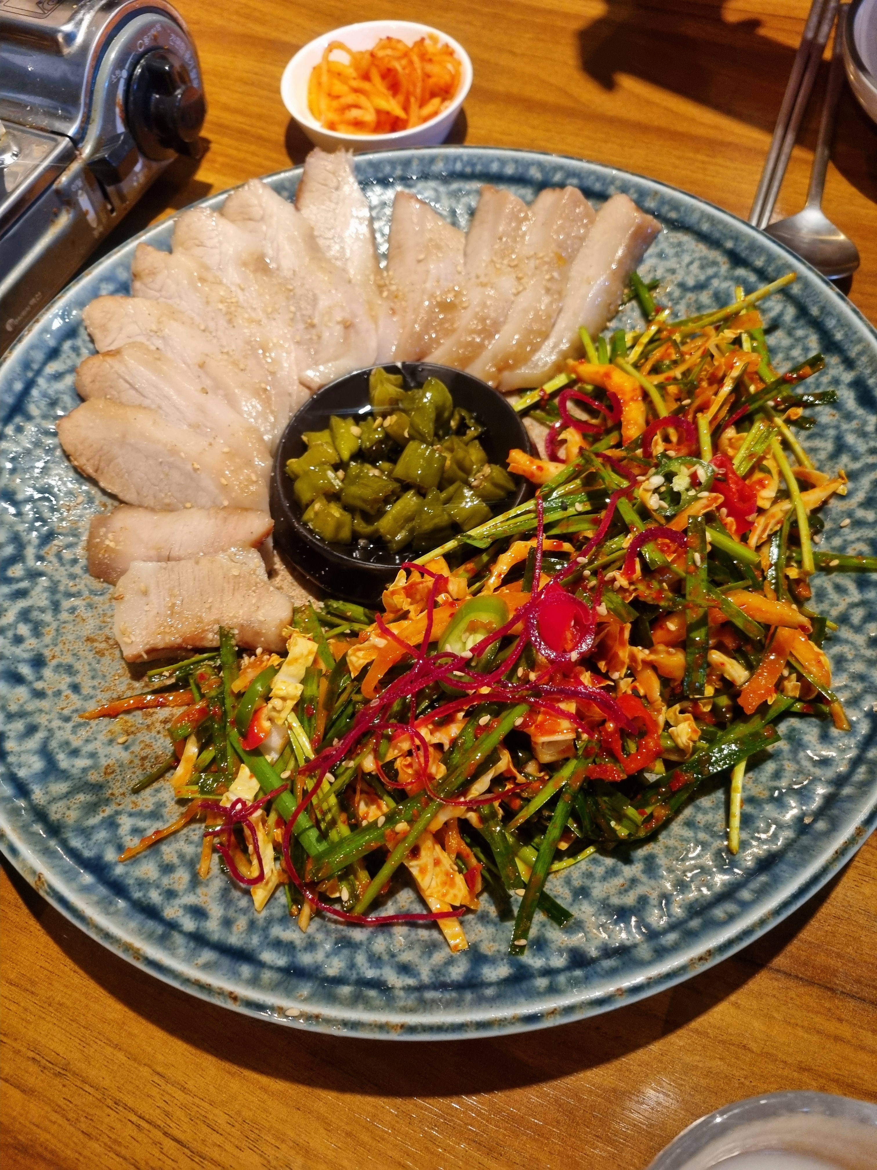 그다음 두 번째 메뉴는 바로!! '항정살 수육과 겉절이 부추김치'입니다.