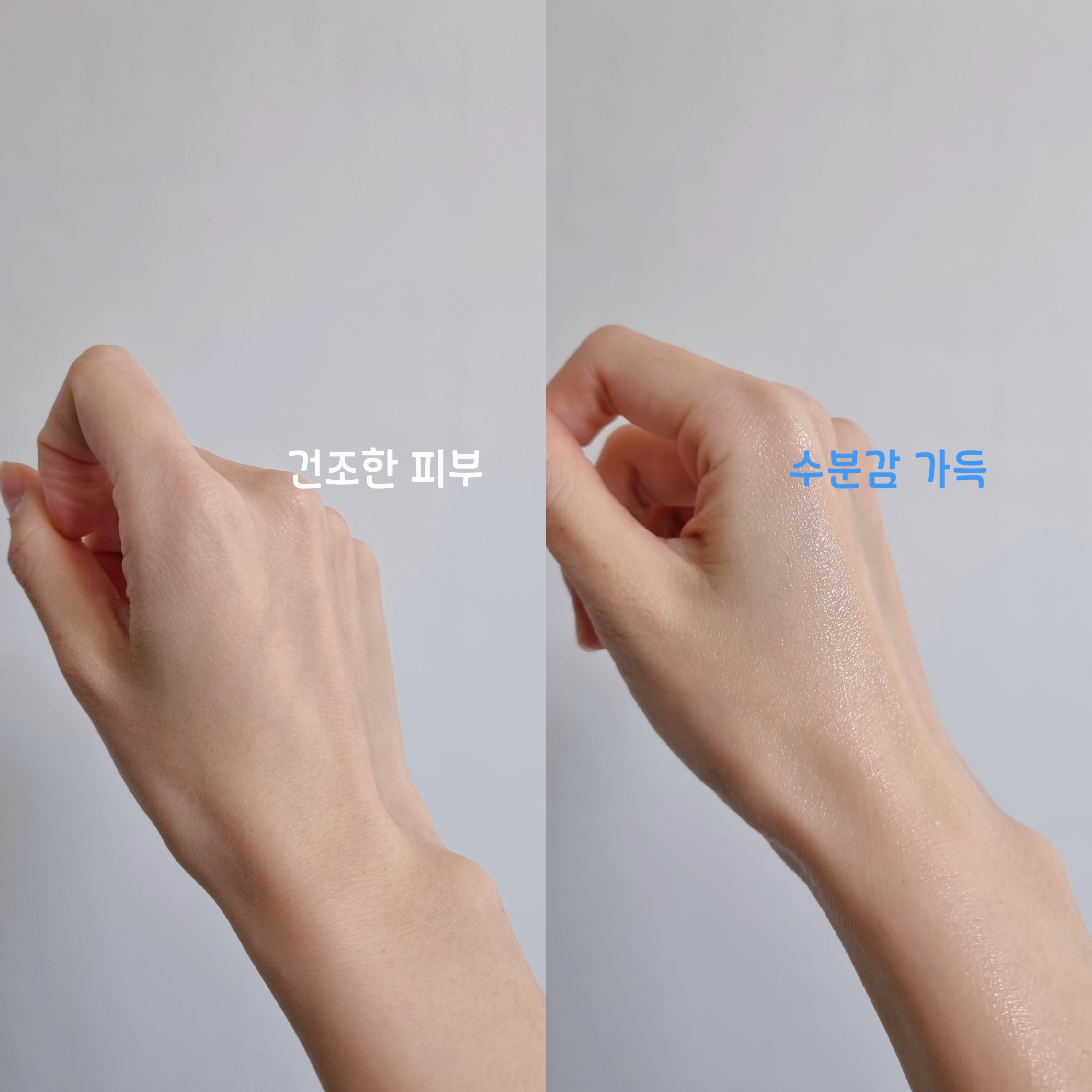 바르기 전과 후 수분감 차이가 많이 나는 것을 볼 수 있습니다.