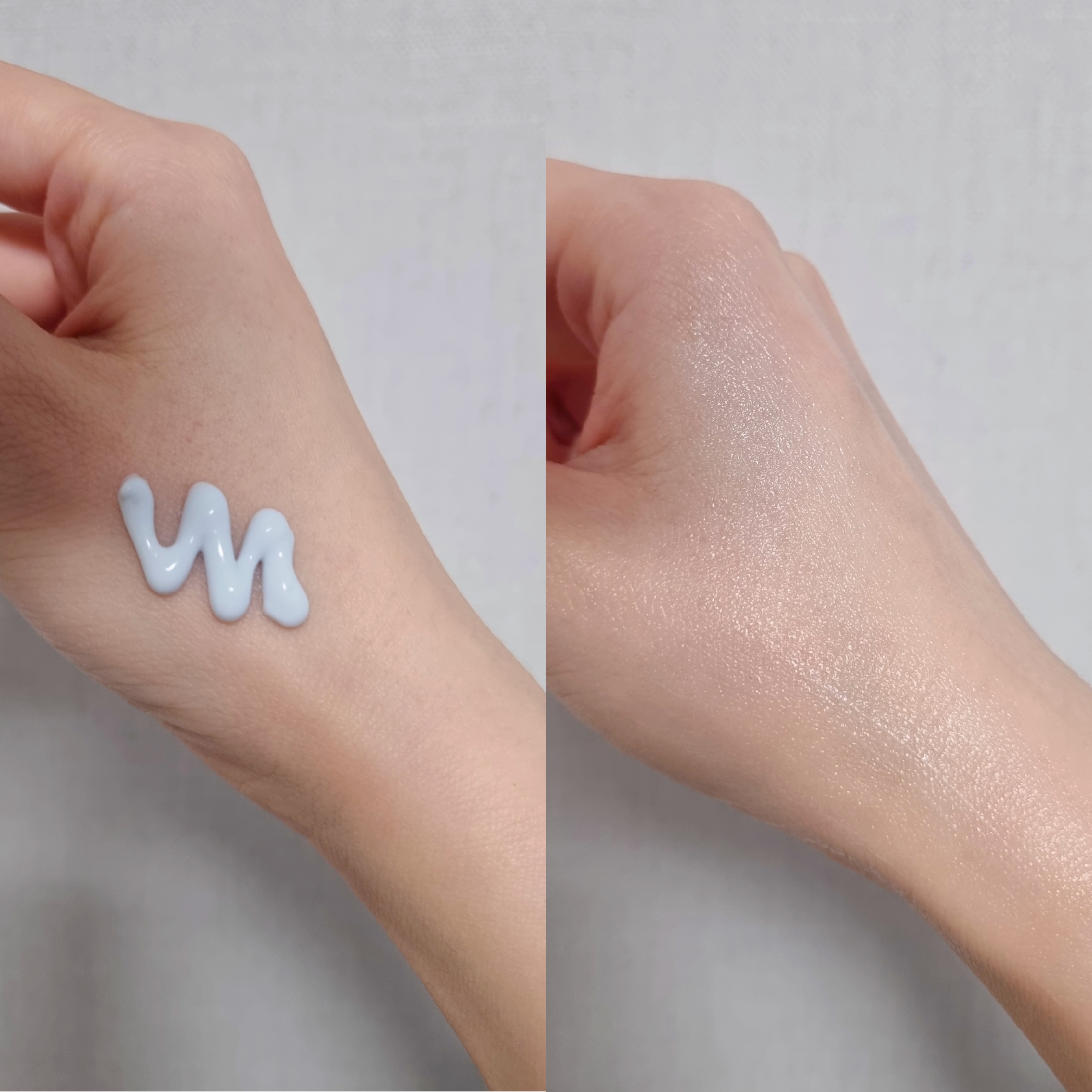 아줄렌 선크림 제형(좌) 및 바른 직후(우)